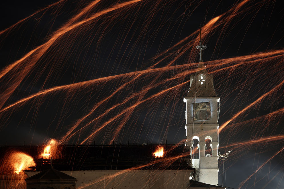 Secondo la tradizione, dopo una lunga riflessione a qualcuno venne l’idea: rinchiudersi nelle chiese e poi dare il via a una sorta di guerriglia, circondandosi di razzi accesi e “bombardando” tutte le guardie turche che avessero provato ad avvicinarsi per impedire la celebrazione.