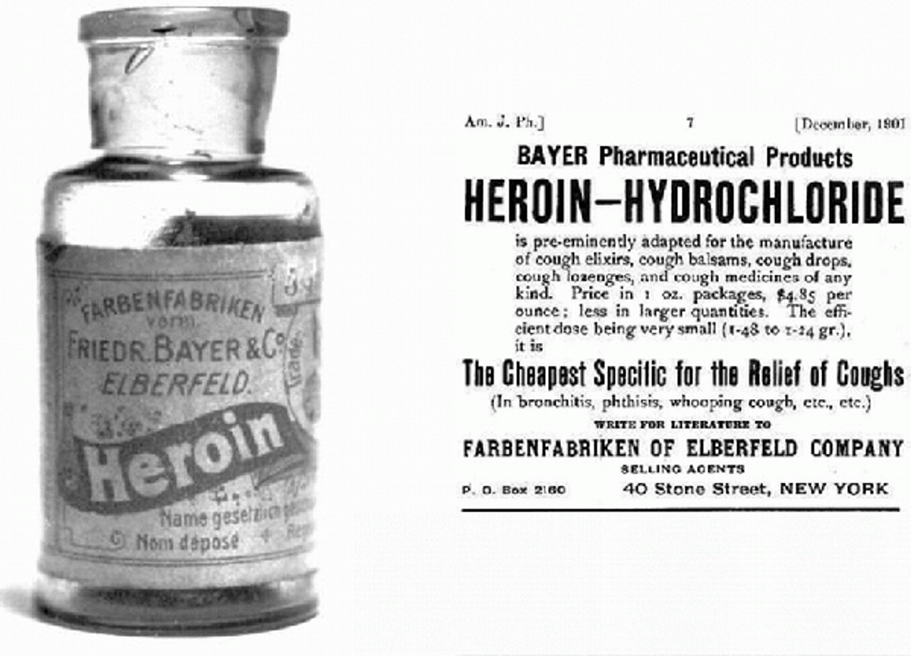 I dipendenti della Bayer, comprensibilmente euforici dopo essersi fatti di eroina, dissero tutto il meglio di questo nuovo farmaco: e così, nel 1898, l’eroina entrò ufficialmente nel catalogo della Bayer, pubblicizzata a spron battuto come nuovo, miracoloso farmaco che non crea alcuna dipendenza (prego, signori: vogliate ridere per non piangere).