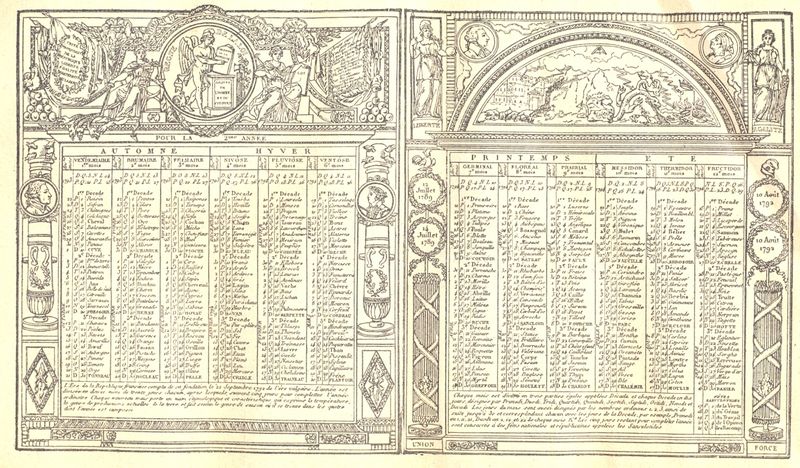 Nel clima di generalizzato entusiasmo verso le meraviglie del calcolo decimale (che fino a quel momento non era un granché utilizzato al di fuori delle aule universitarie, e che solo a fine Settecento cominciò a trovare una applicazione pratica), gli illuministi francesi decisero di… decimalizzare la qualunque. E così – se me la passate – anche l’anno fu trattato alla stregua di un metro, con i suoi multipli e sottomultipli.