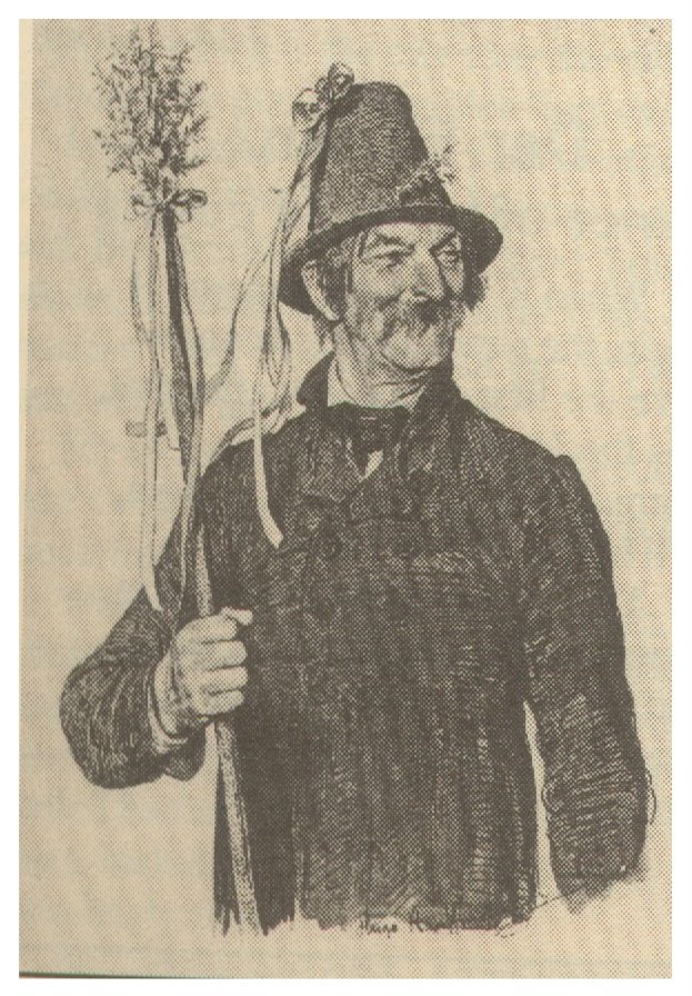 una via di mezzo tra il bastone decorato e la scopa di saggina, che immagino avesse un’utilità pratica ben scarsa nel governo del bestiame, ma che simbolicamente veniva imbracciato dai pastori quando ormai mancavano pochi chilometri alle stalle. Dopodiché, il bestiame veniva riconsegnato al suo legittimo proprietario… e la Martinsgerte lo seguiva a ruota, giacché i pastori la regalavano al loro (ormai ex-) datore di lavoro.