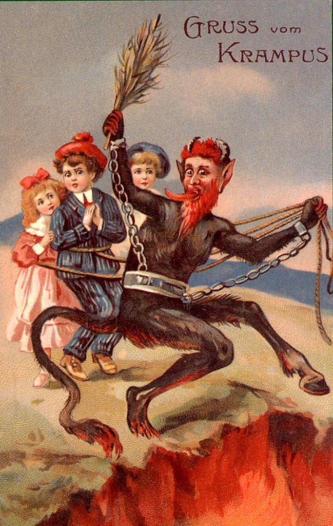 Ma il vero Krampus non aveva mai preso la brutta abitudine di rapire i bambini cattivi – men che meno di mangiarli. Si limitava a prenderli a frustate, su indicazione del santo, punendoli per le passate malefatte e sperando di favorire una futura “conversione”.