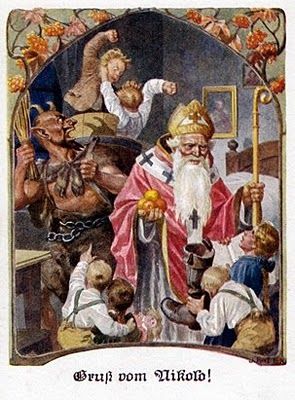 E, voglio dire: perché mai san Nicola avrebbe dovuto scegliersi come aiutante un demone, o peggio ancora starsene lì a pensare ai dolci di Natale mentre il demonio trascinava all’Inferno anime della cui salvezza nessuno si curava?