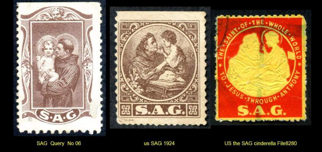 Questa devozione ebbe un’impennata di popolarità a partire dagli anni ’20 del Novecento, quando le comunità francescane del Nord America scoprirono un modo per monetizzarla. I Francescani statunitensi (chiamali scemi) cominciarono cioè a far stampare ad alta tiratura dei piccoli francobolli commemorativi recanti l’immagine di sant’Antonio e l’immancabile scritta “SAG”, che ormai veniva frequentemente sciolta in lingua inglese con il significato di St. Anthony’s Guide. Venduti a pochi centesimi nelle sacrestie delle chiese francescane, i francobolli erano ovviamente privi di valore legale: altro non erano che stampini decorativi da aggiungere alla busta come segno di devozione. Eppure ebbero una grande diffusione, e oggigiorno sono una chicca piuttosto ricercata dai filatelici.