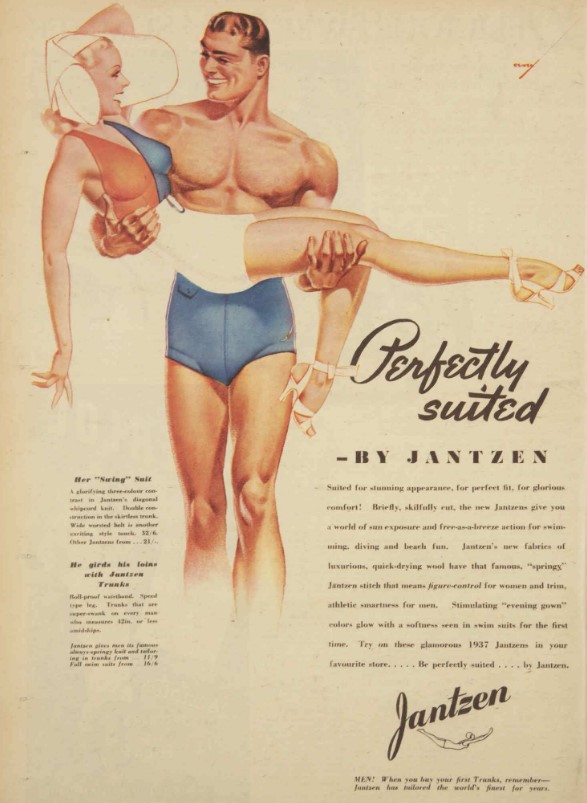 Non sorprendentemente, l’essere bombardati da affermazioni di questo tipo non fece un granché per aiutare l’autostima dei giovanotti anni ’20. Anche perché, a voler essere obiettivi, gli impietosi stilisti avevano ragione: oggettivamente, andare in giro in mutande non aiuta un granché a mascherare tutte quelle caratteristiche fisiche che uno potrebbe non voler mettere in mostra.