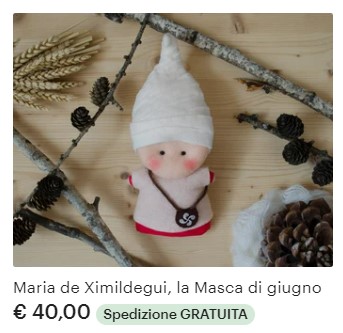 E lì ho annuito, con un sorriso: “sì, sono streghe diverse dal solito. Vanno capite. E non hai idea dell’attenzione con cui ne ha curato i costumi: con alcune libertà artistiche, ovviamente, ma ogni abito è ispirato a quelli che si vedono in quadri d’epoca, dipinti nel periodo e nella zona d’Europa in cui ha vissuto la strega. Veramente un lavoro artigianale di livello. Dato a chi lo sa apprezzare, per me sarebbe il perfetto regalo di Natale”. John s’era di nuovo distratto curiosando tra i miei libri, ma io ho continuato imperterrita: “l’ha fatto, ovviamente, per la volontà di inserire ogni storia nel contesto, e di distaccarsi dalla nostra immagine stereotipata di streghetta col cappello a punta. E poi, a quanto mi diceva, anche per far vedere che alcuni elementi che oggi fanno parte del nostro immaginario stregonesco vi sono entrati per motivazioni storiche reali. La bambola ispirata a Maria de Ximildegui, per esempio, indossa veramente un cappello a punta, ma è il cappello tipico delle donne della tradizione basca, che compongono la quasi totalità degli individui processati per stregoneria in Spagna. È interessante domandarsi se e fino a che punto questi reali elementi di folklore si siano ricombinati per dare origine all’immagine di strega che abbiamo oggi”.