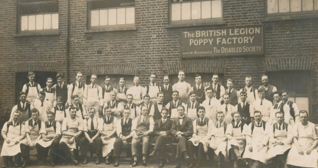 Fu proprio Anne Guerin a coinvolgere nel suo progetto la Royal British Legion d’Oltremanica, che era stata fondata nel 1921 con lo scopo di fornire sostegno economico ai soldati britannici resi invalidi e dunque incapaci di ritornare al loro lavoro di sempre. Visto il buon successo che aveva riscontrato in Francia dalla vendita delle sue spillette, la signora Guerin ritenne che anche gli ex-alleati avrebbero potuto giovarsi di questa idea. E dunque, passò tutto il know-how alla Royal British Legion, che fece tesoro di questa esperienza: un piccolo stabilimento nella periferia di Londra diede lavoro a quaranta veterani di guerra rimasti invalidi, che iniziarono a lavorare alacremente per confezionare piccole spillette floreali di carta, che furono poi messe in vendita nel mese di novembre a commemorare l’anniversario dell’armistizio.