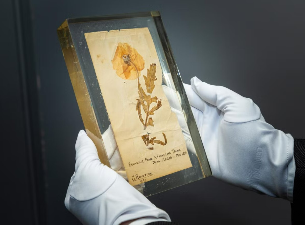 Nei giorni immediatamente successivi a quel 3 maggio 1915, John McCrae mostrò la sua poesia ad alcuni commilitoni. Il successo fu dirompente: i suoi versi cominciarono a essere recitati di bocca in bocca e si diffusero lungo la linea del fronte; i cappellani militari li citarono nelle prediche; i soldati ne fecero riferimento nelle loro lettere a casa. Nel maggio 1916 (era già passato un anno da quella prima primavera di guerra) Cecil Roughton, un diciassettenne arruolato nel Royal Warwickshire Regiment, raccolse uno di quei papaveri che ostinatamente continuavano a fiorire nella desolazione, lo fece seccare tra le pagine di un libro e poi lo spedì per a sua mamma, che viveva a Birmingham, in un bigliettino postale che recitava, con amara ironia: “Souvenir dalla linea del fronte vicino Arras, Maggio 1916”. Oggi, quel fiore è un pezzo da museo, gelosamente conservato dalla Royal British Legion; ed è, a suo modo, testimonianza di quanto, in pochi mesi, il papavero fosse già diventato simbolo caro a tutti i soldati alleati.