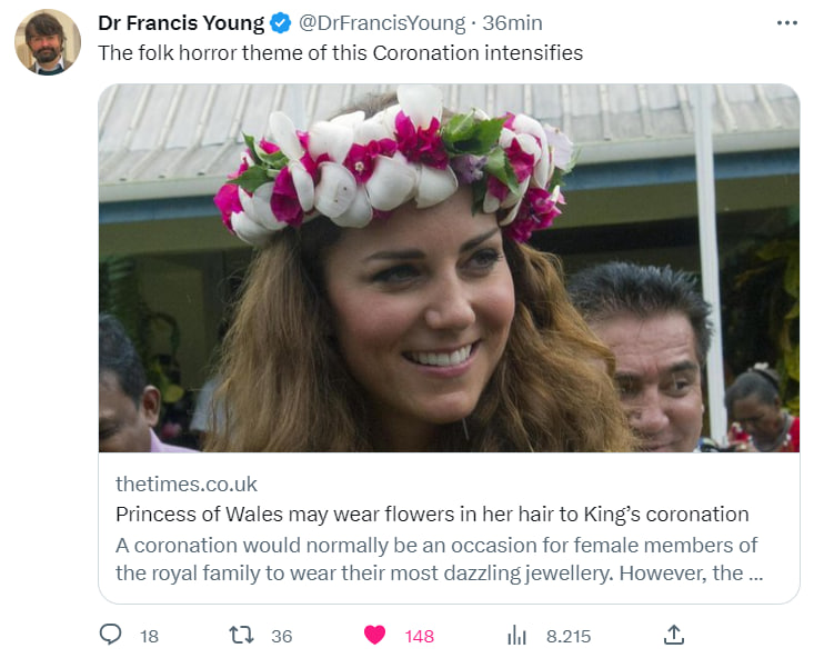 Che poi, oggigiorno, molti esponenti del mondo neopagano guardino con grande simpatia al benevolo Green Man, intendendolo come simbolo della natura che rinasce: questa è tutt’altra questione, e naturalmente va benissimo così. Ma, ecco: non è che il Green Man sia nato come simbolo druidico. Non c’è niente di paganeggiante nella scelta di re Carlo, che probabilmente avrà incluso l’immagine in omaggio alla sua forte attenzione per le tematiche ambientali, che sono un po’ leitmotiv di tutta questa incoronazione.