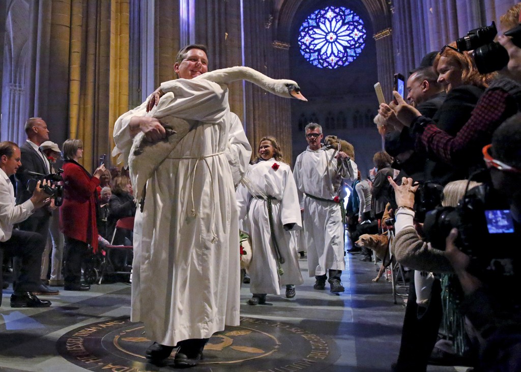 La sua restò un’esperienza isolata fino al 1979, quando la proclamazione di san Francesco a patrono dell’ecologia sembrò incoraggiare molte altre comunità a seguire l’esempio di quel confratello visionario, che (piuttosto letteralmente) aveva precorso i tempi. Nel 1979, numerose parrocchie nella diocesi di Toronto benedirono gli animali domestici a inizio nel giorno di San Francesco, e nel 1984 fu la cattedrale di Washington a scegliere la stessa data per aspergere acqua santa sui musetti pelosi. Nel 1985, la comunità episcopaliana di New York volle unirsi al trend e lo fece in grande stile, trasformando la navata in quell’incredibile caravanserraglio che abbiano già descritto e che a buon diritto conquistò le prime pagine dei giornali, dando all’iniziativa un’eco nazionale.