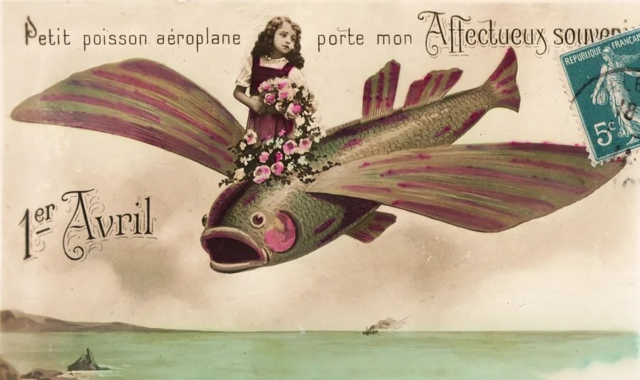 Ci sta. Perché, proprio nelle ultime decadi dell’Ottocento che il poisson d’avril era diventato (soprattutto in Francia) un fenomeno commerciale. Le cartolerie cominciarono a vendere pesci di carta già pronti all’uso, spesso arricchiti da motti di spirito; le tipografie iniziarono a produrre cartoline postali da spedire agli amici lontani e le pasticcerie presero a mettere in mettere in vetrina dei grossi pesci di cioccolato. Insomma, il 1° aprile stava diventando una festa consumistica, un po’ come il Natale, la Pasqua e San Valentino – e se oggi i nostri supermercati non sono invasi dal merchandising a tema ittico, lo dobbiamo in gran parte a quel concatenarsi di tragedie che a partire dal 1914 flagellarono l’Occidente a suon di guerre, pandemie e recessione: ancora troppo giovane per radicarsi nell’immaginario collettivo (e, probabilmente, troppo vicino alla Pasqua per poter seriamente sperare di farle concorrenza), il povero pesce d’aprile finì col perdere pian piano il fascino commerciale che aveva avuto per qualche decade.